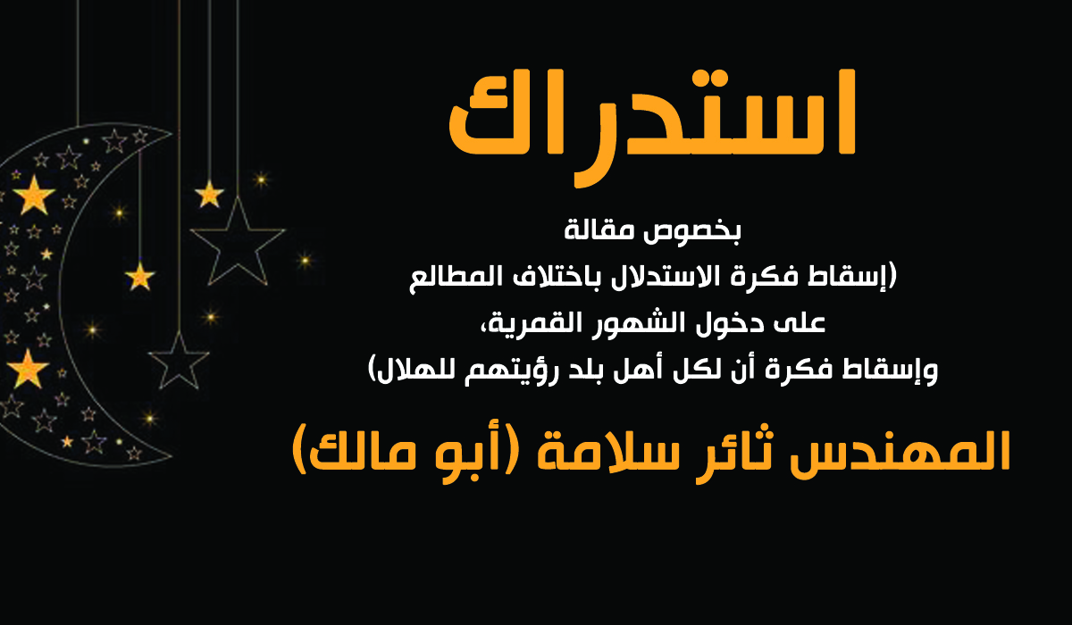 • إسقاط فكرة الاستدلال باختلاف المطالع على دخول الشهور القمرية، وإسقاط فكرة أن لكل أهل بلد رؤيتهم للهلال
